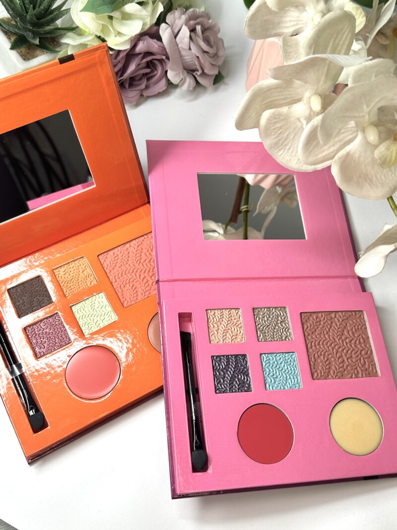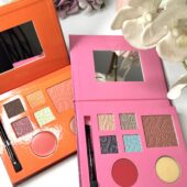 Palette con due blush di diversa tonalità e 5 ombretti con pennello doppio