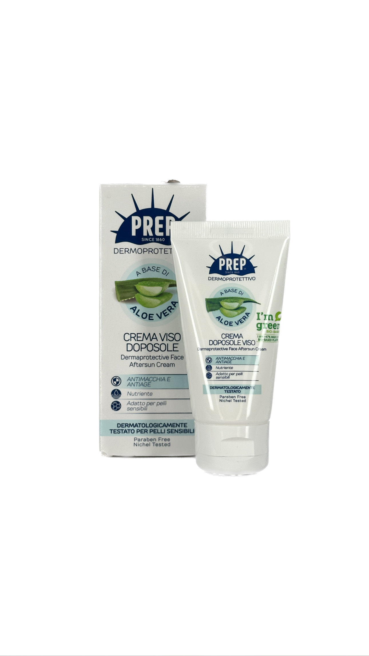 La Crema Doposole Viso Prep formulata con 20% di succo d’Aloe è un concentrato di delicatezza per donare un immediato sollievo alla pelle stressata dopo l’esposizione al sole. La sua formula è arricchita con burro di karitè dalle proprietà nutrienti e con vitamina E che aiuta a contrastare la formazione dei radicali liberi. Inoltre, contiene acido ialuronico e olio di crusca di riso che hanno un’azione antiage per contrastare i segni del tempo ed un complesso naturale composto da papaia e guaiava che aiuta a ridurre e prevenire la comparsa di macchie sulla pelle. È dermatologicamente testata per pelli sensibili quindi particolarmente indicata per pelli delicate e irritabili.
